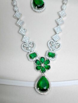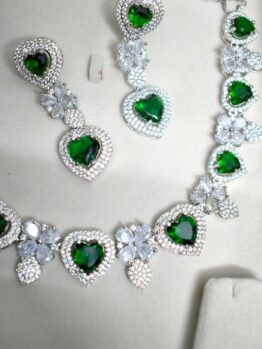 đ Elegant Green Heart Design: Features a beautiful heart-shaped pendant with rich green stones paired with sparkling AD diamonds â perfect for a classy, graceful look.