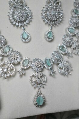 🩵 Elegant Mint Bridal Look: Soft mint stones give a fresh, pastel bridal charm perfect for modern weddings.