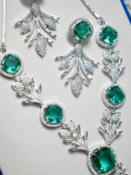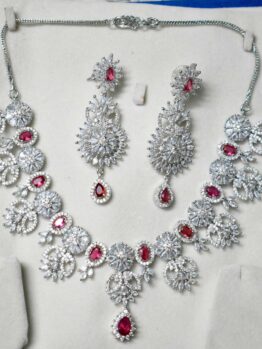 Shine with elegance wearing this Lerora white American Diamond set – perfect for weddings, parties & festive occasions. Premium finish with timeless charm.