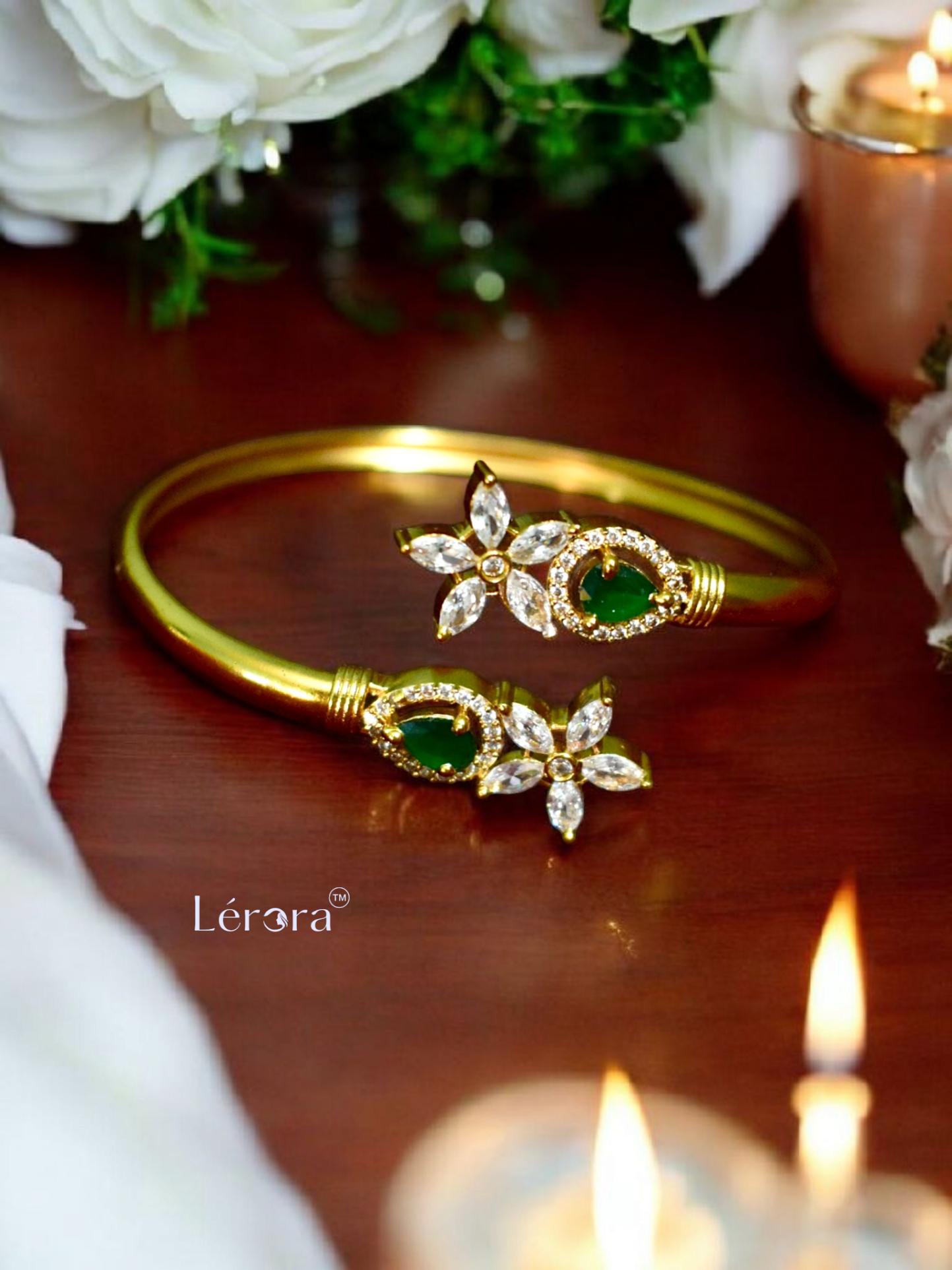 🌿 Lerora Elegant Flower Green Gold Bracelet
