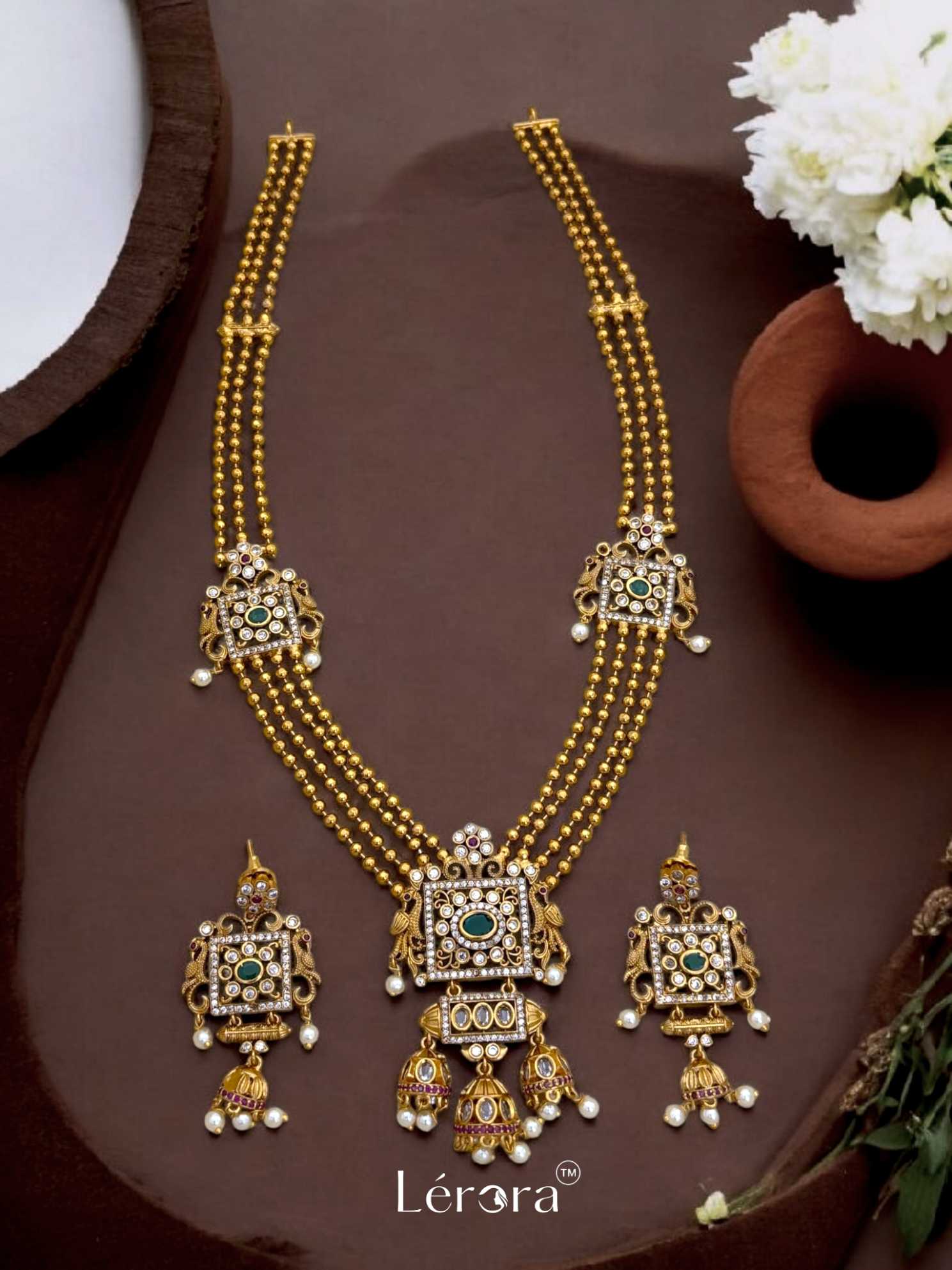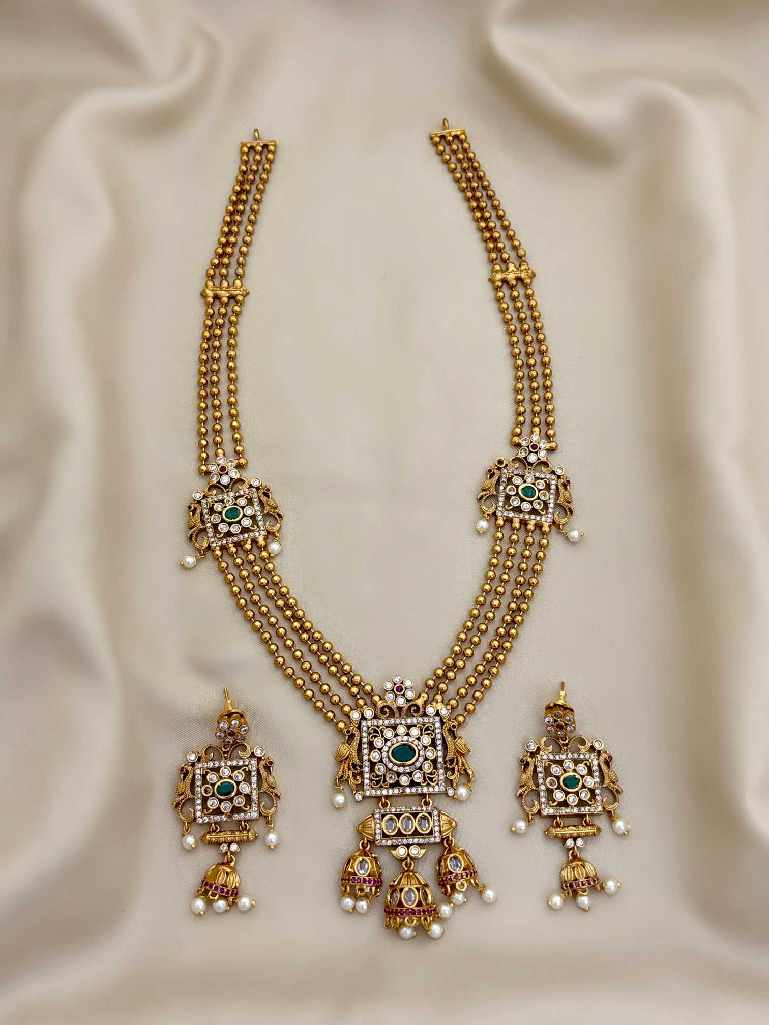 👑 Inspired by South Indian Traditions – A long haram designed to reflect cultural richness and grace