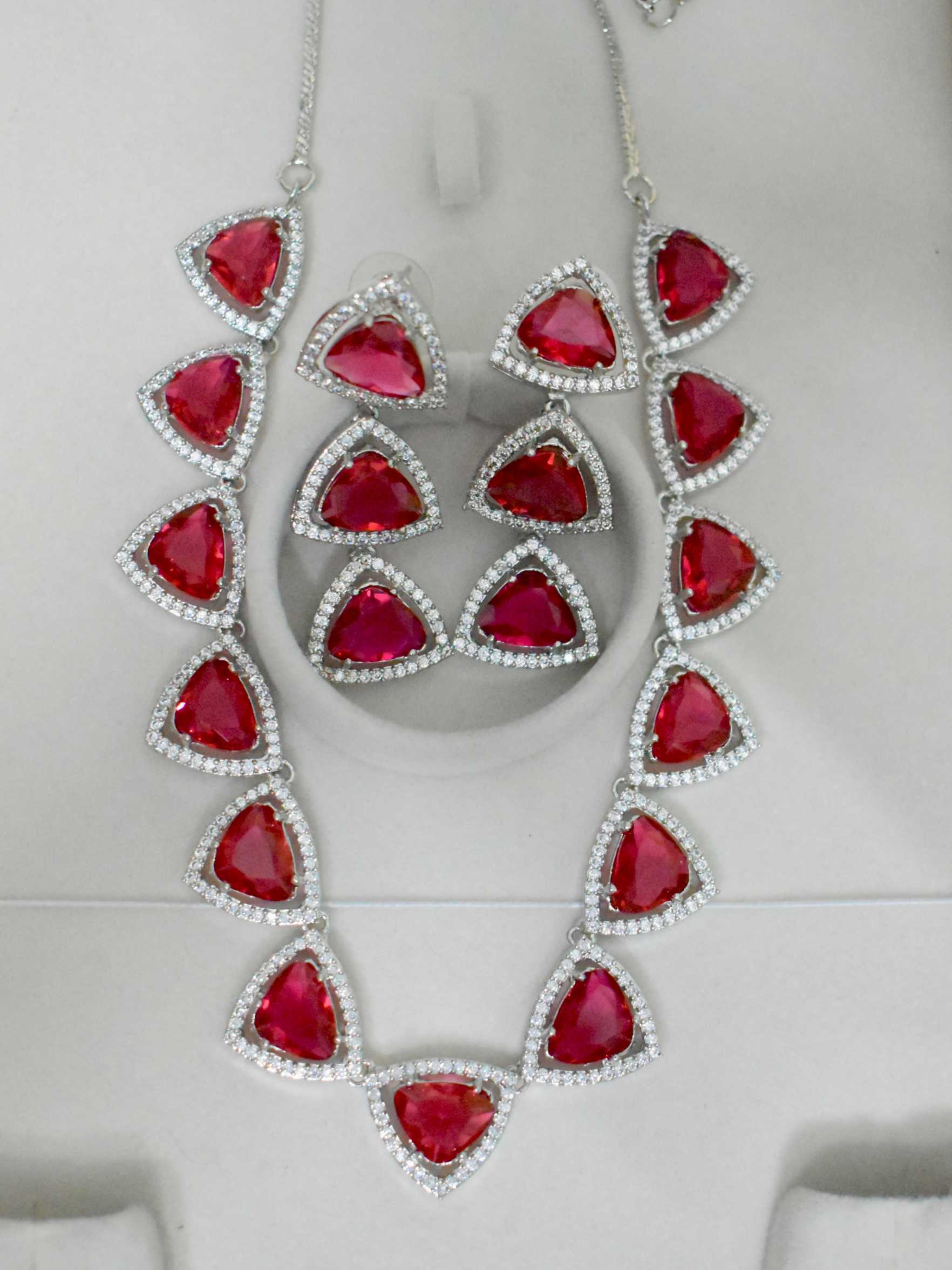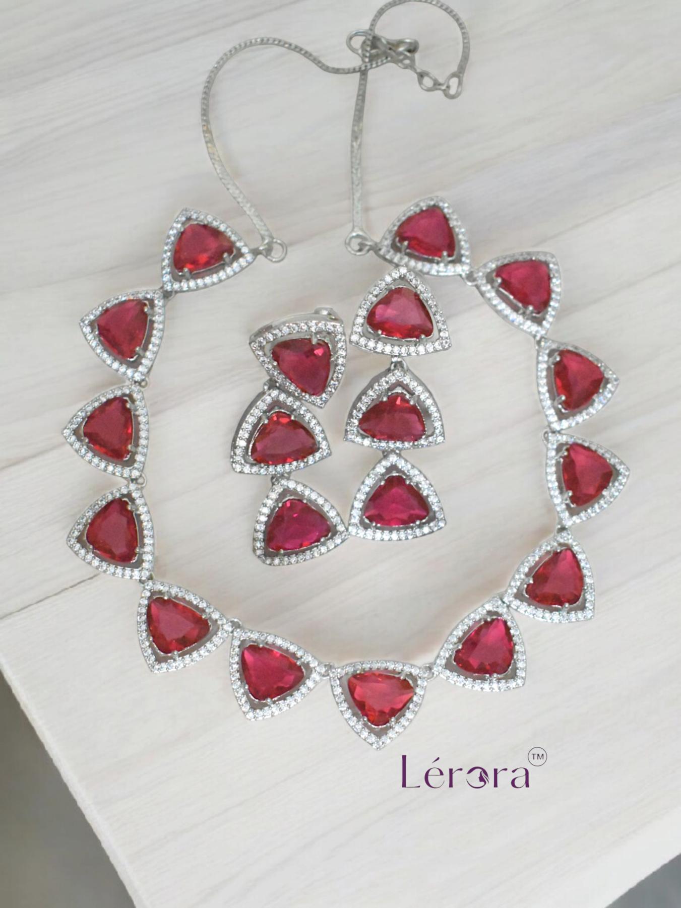 ❤️ Lerora Red Triangle Diamond Look Necklace Set LJ10
