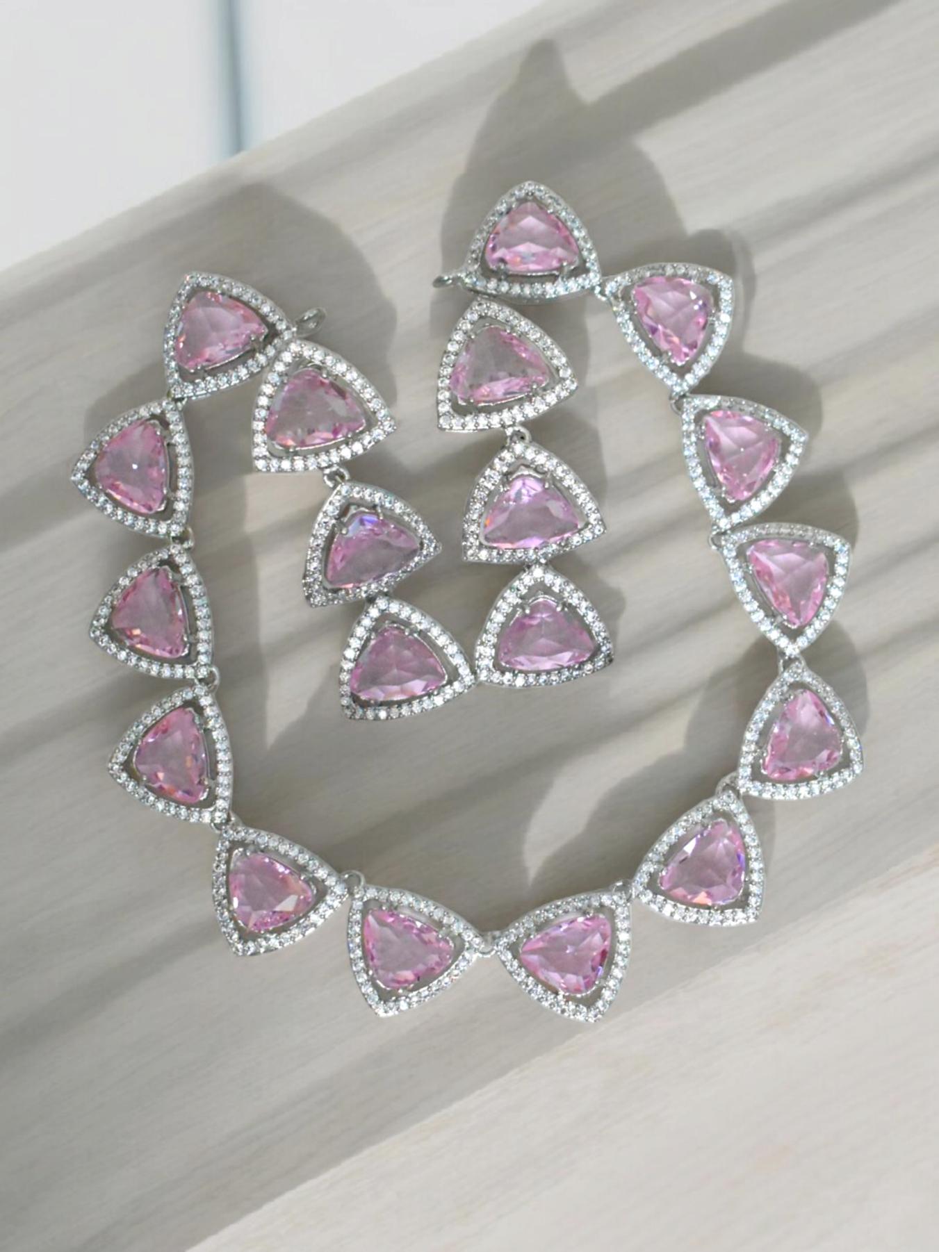 💖✨Lerora Crystal Pink Triangle Diamond Look Necklace Set LJ10