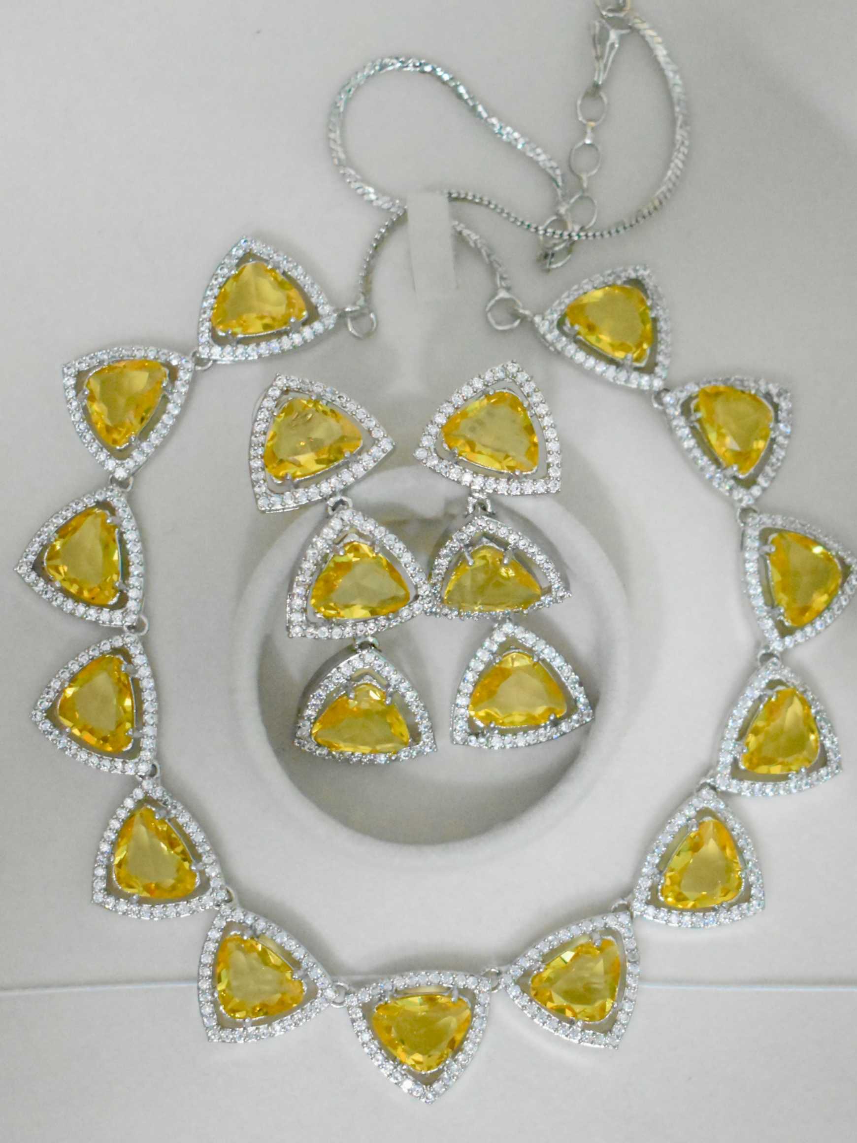 💛 Lerora Yellow Triangle Diamond Look Necklace Set LJ10