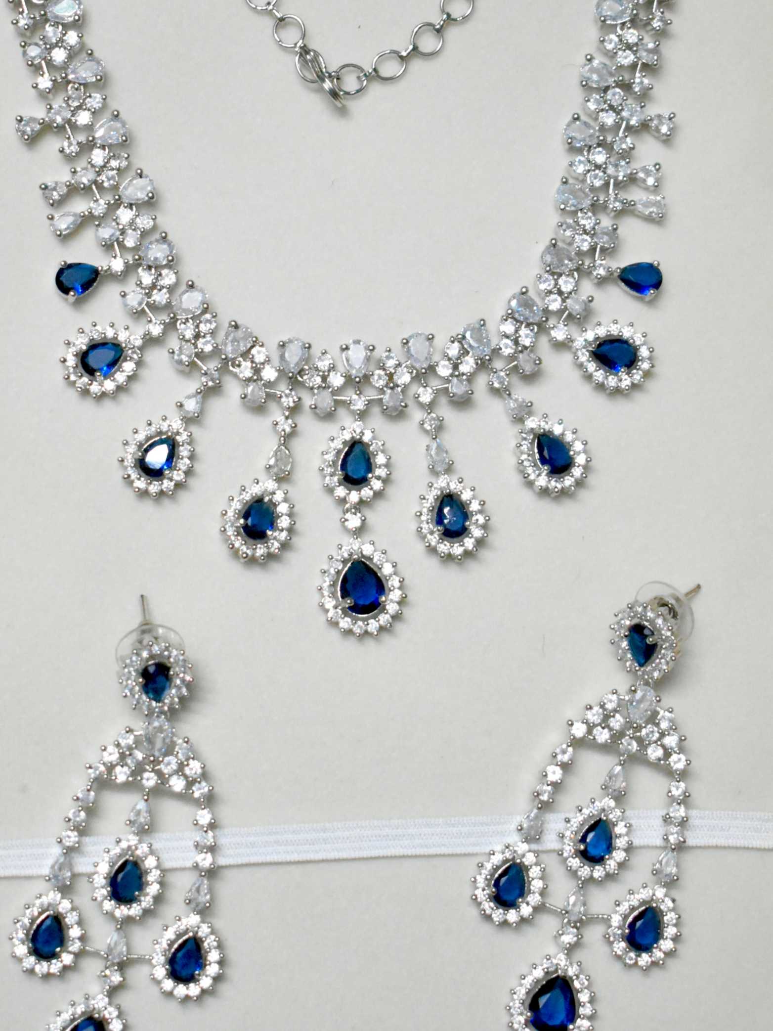 💙 Elegant Blue Rain Drop Stones: Crafted with stunning raindrop-shaped blue stones paired with shimmering AD diamonds for a rich, royal bridal look.