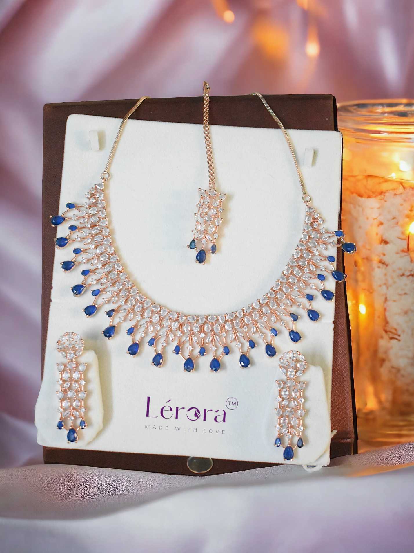 Lerora Blue Rose Gold AD Set with Maangtikka💙LJ8