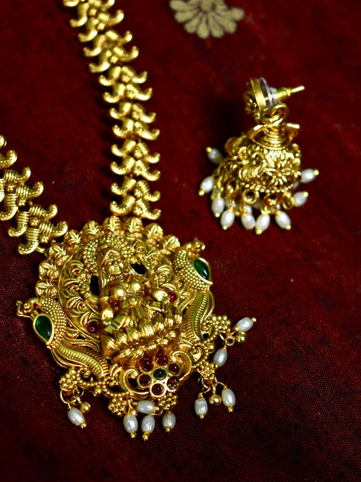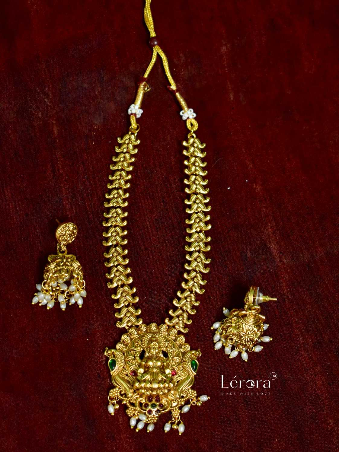 Lerora – Gold Traditional Temple Lakshmi Pendant Set LJ4