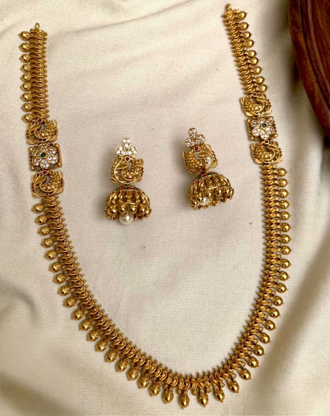 🎁 Value-Packed Ethnic Jewellery – A beautiful long haram with jhumkas that completes your look effortlessly