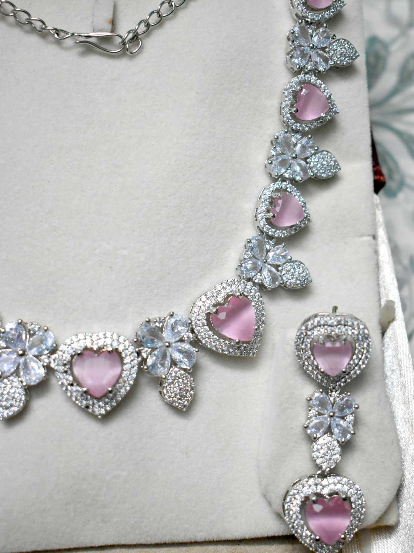 💗 Romantic Pink Heart Design: Features a delicate heart-shaped pendant with soft pink stones and sparkling AD diamonds — perfect for elegant and romantic looks.