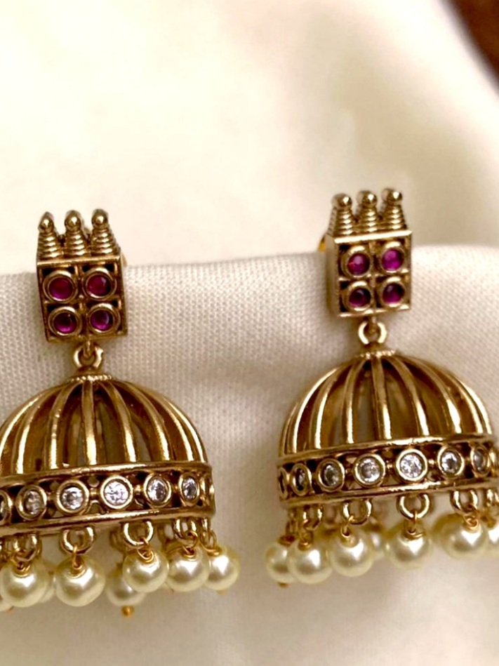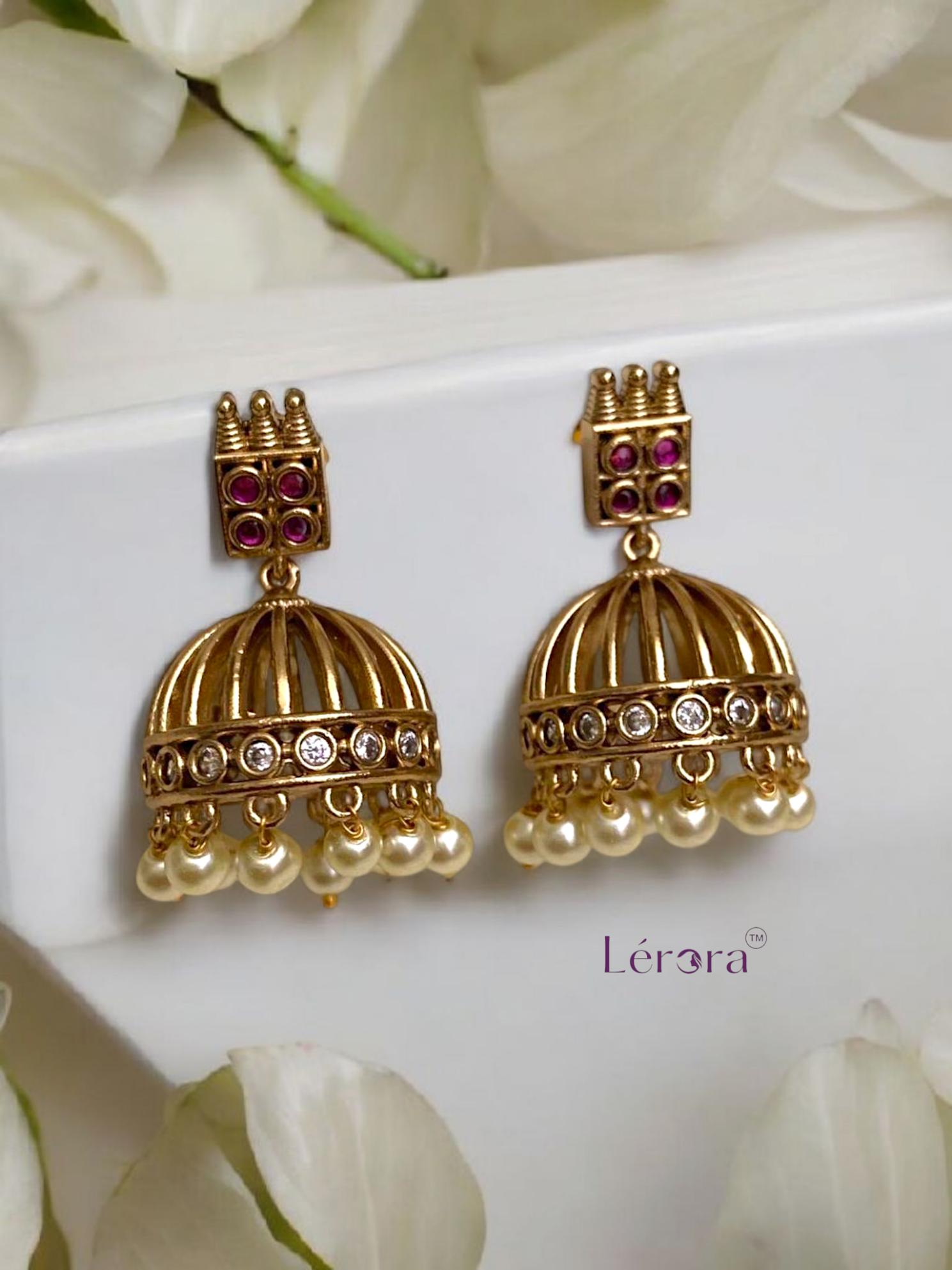 Lerora Red Antique Dome Jhumka Earrings🛕