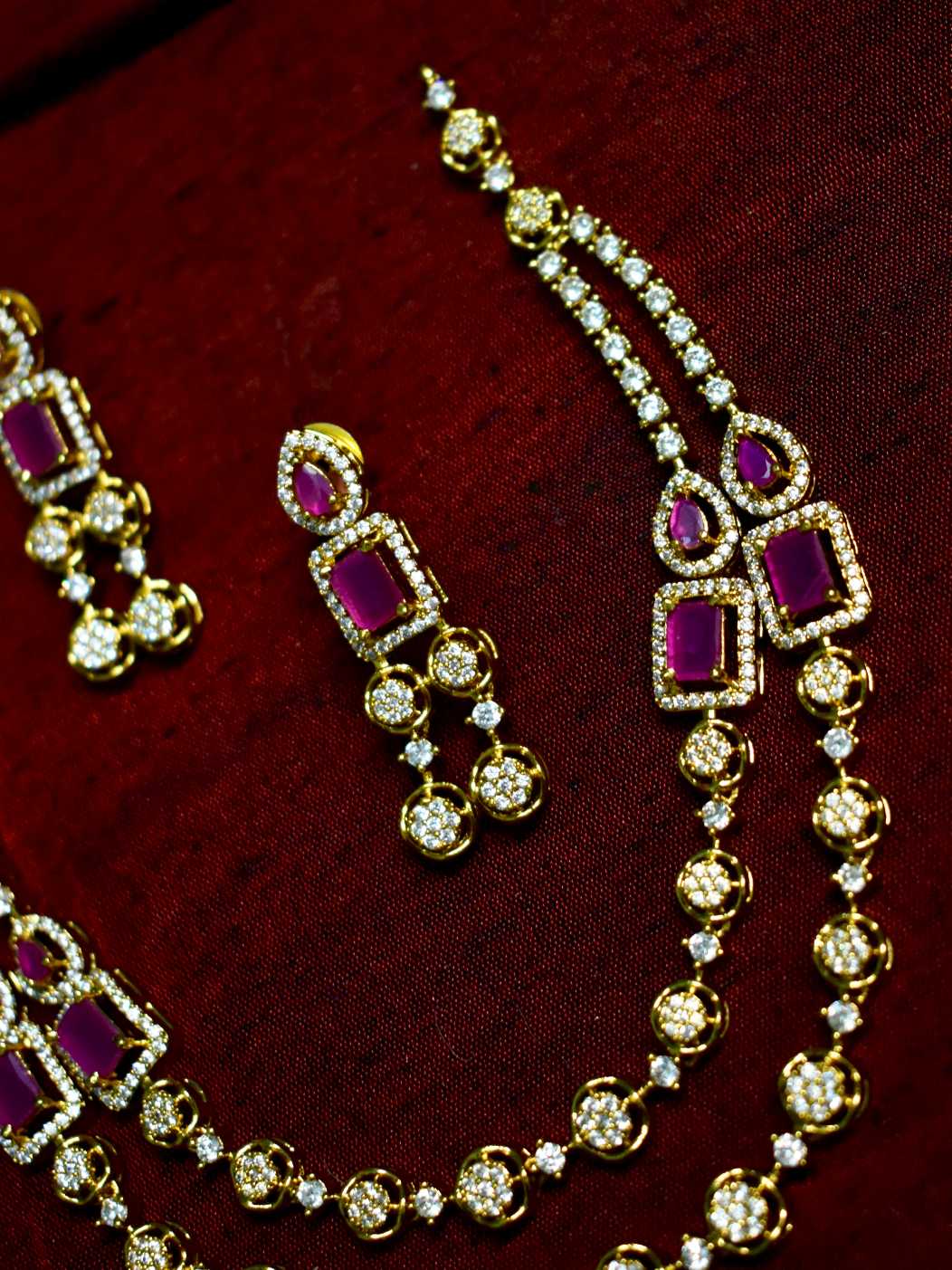 Lerora Two-Layered AD Pink & Gold Necklace Set LJ3