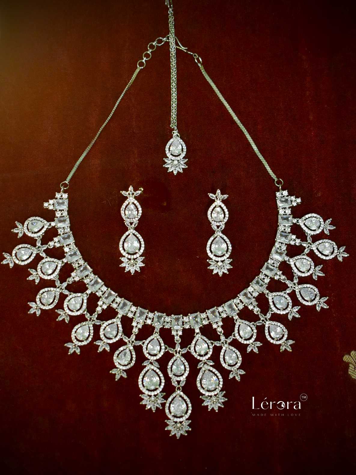 Be the first to review “Lerora White AD Bridal Jewellery Set with Maangtikka🤍Lj10”
